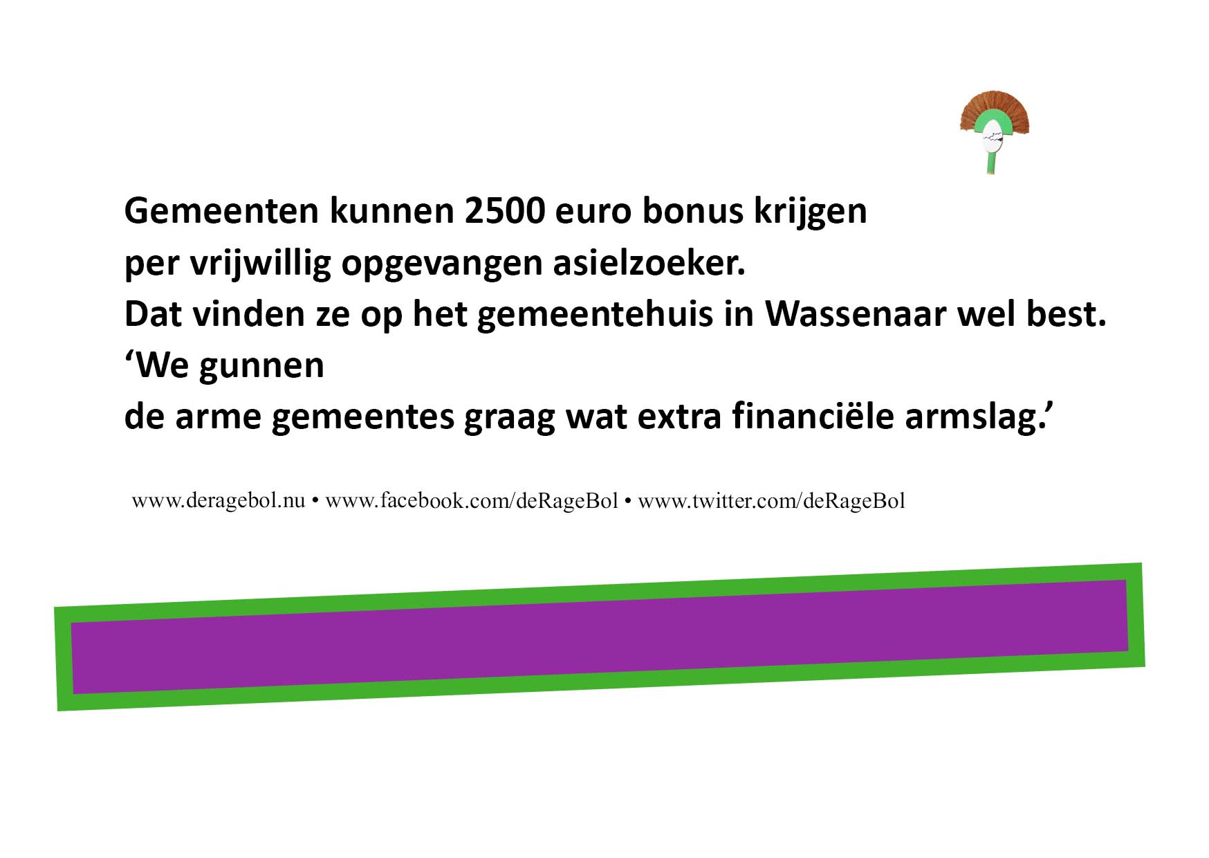 Gemeenten kunnen 2500 euro bonus krijgen per vrijwillig opgevangen asielzoeker.