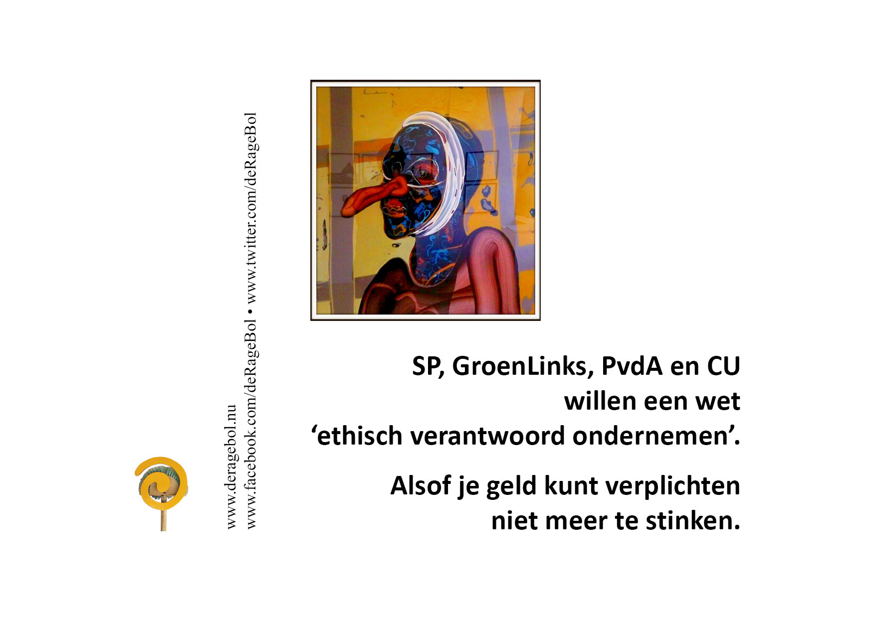 willen een wet 'ethisch verantwoord ondernemen'.Alsof je geld kunt verplichten niet meer te stinken.