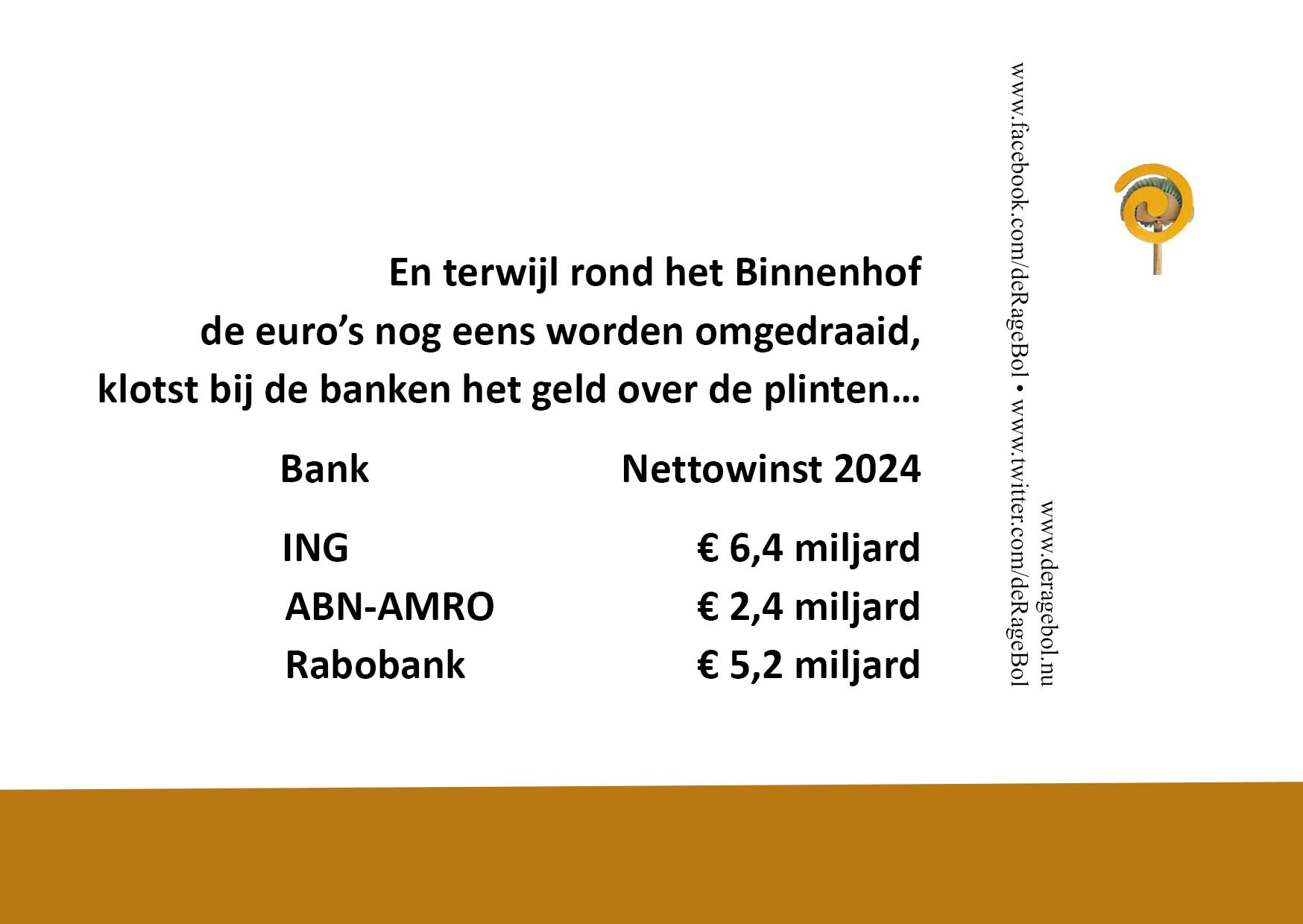klotst bij de banken het geld over de plinten...
