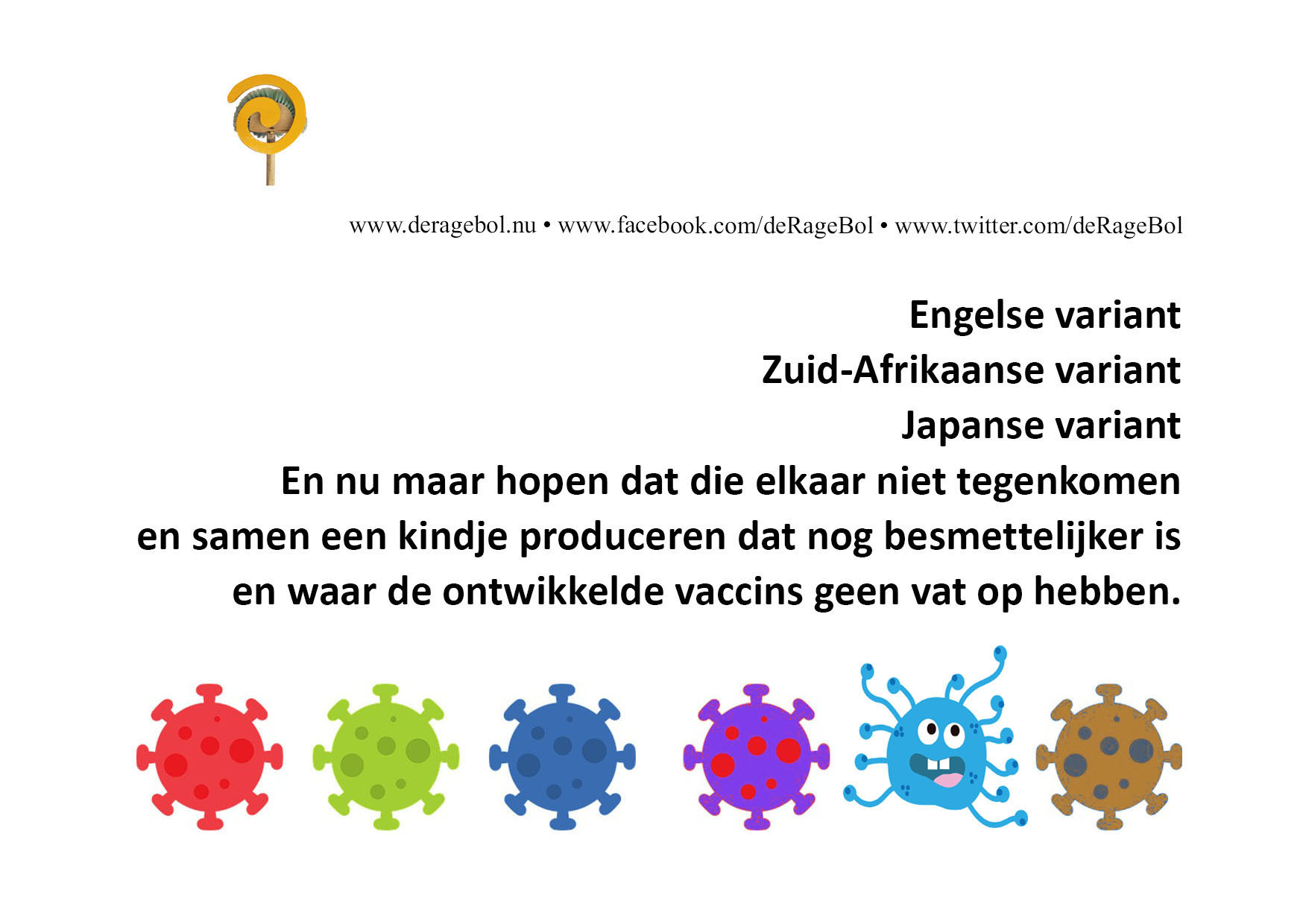En nu maar hopen dat die elkaar niet tegenkomen en samen een kindje producerendat nog besmettelijker is en waar de ontwikkelde vaccins geen vat op hebben.