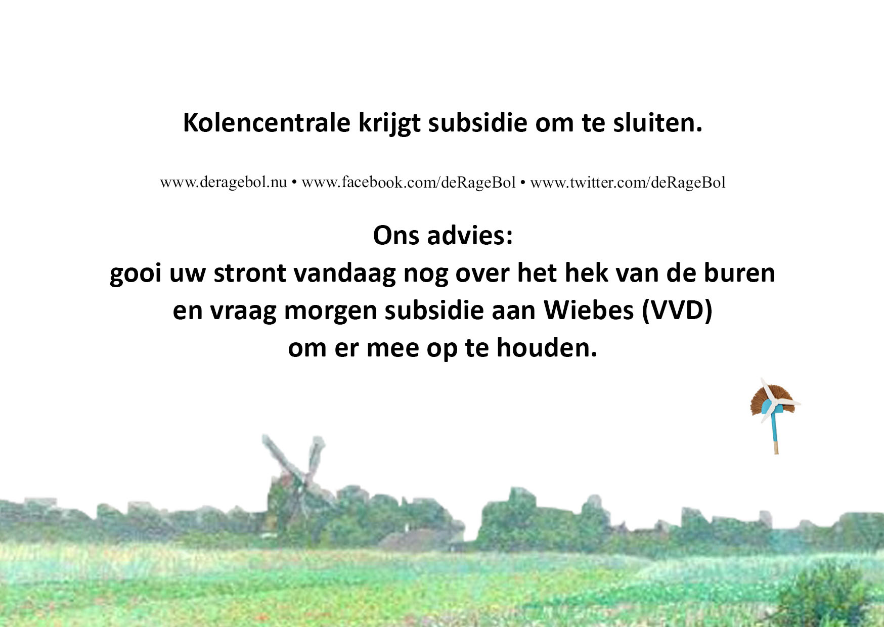 gooi uw stront vandaag nog over het hek van de buren en vraag morgen subsidie aan Wiebes (VVD) om er mee op te houden.