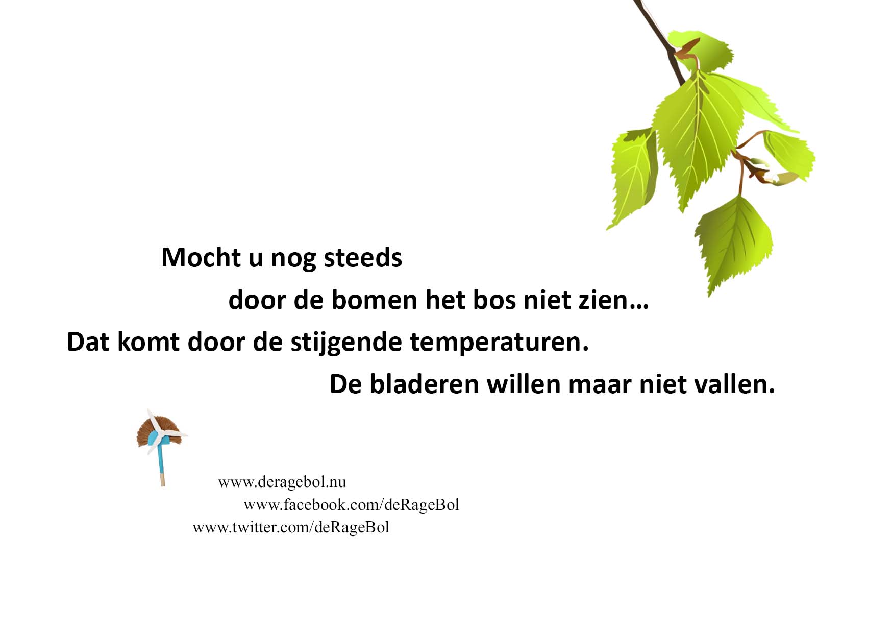 Mocht u nog steeds door de bomen het bos niet zien...Dat komt door de stijgende temperaturen.De bladeren willen maar niet vallen.