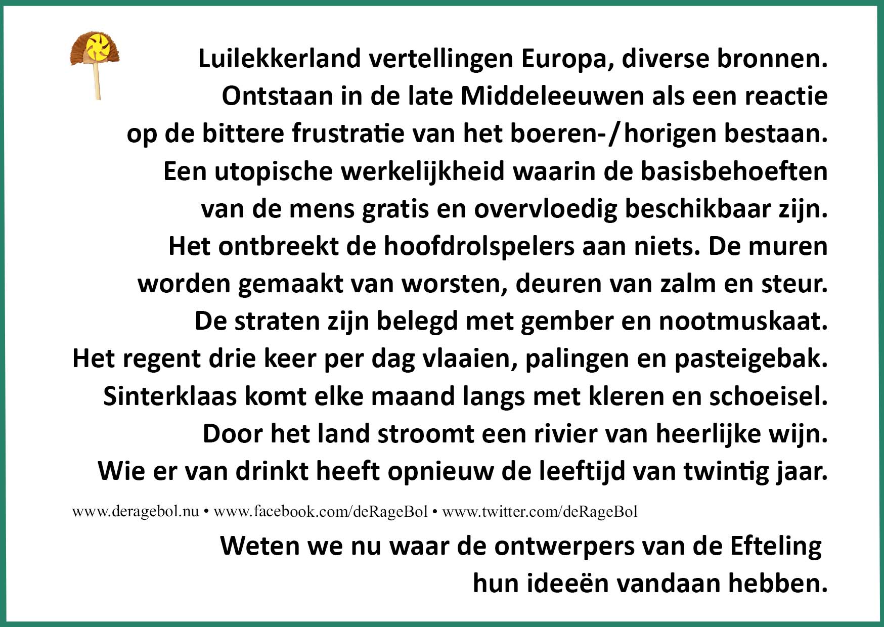 Luilekkerland vertellingen Europa, diverse bronnen.