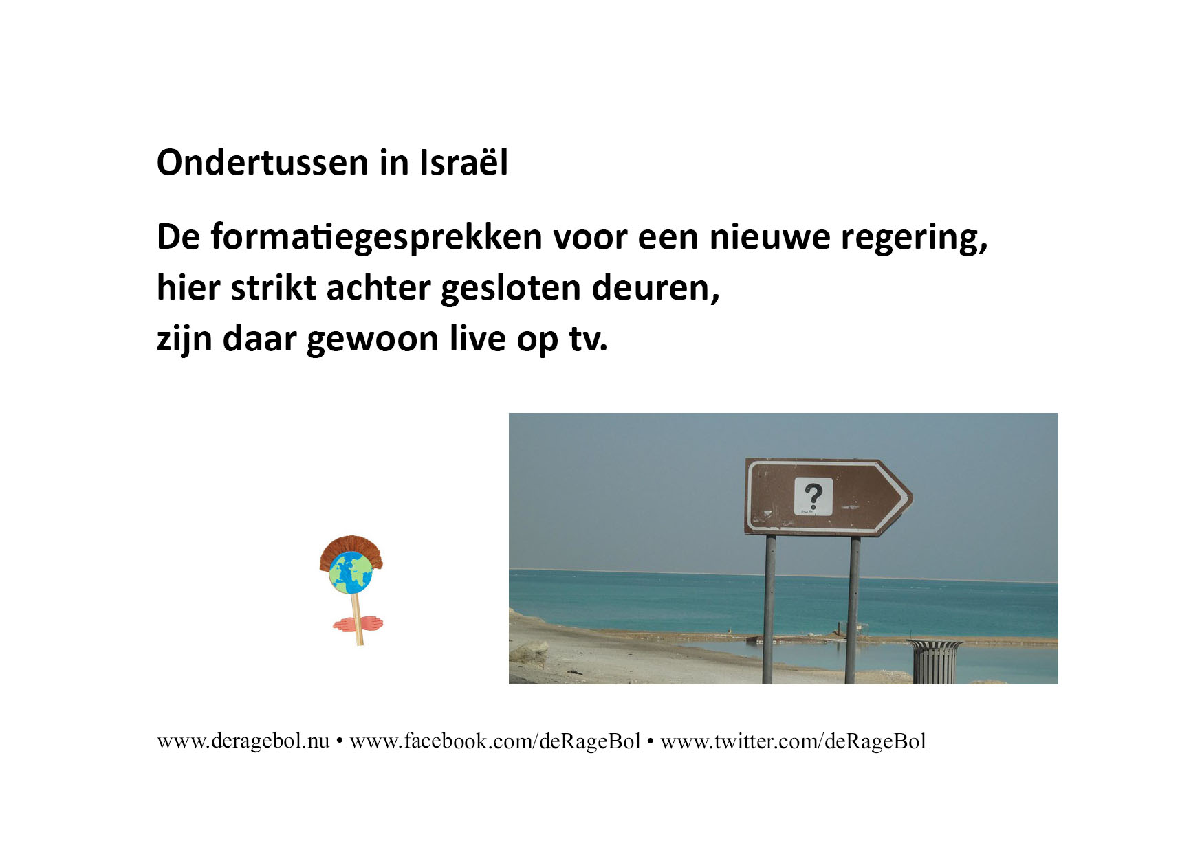 Ondertussen in IsraëlDe formatiegesprekken voor een nieuwe regering,