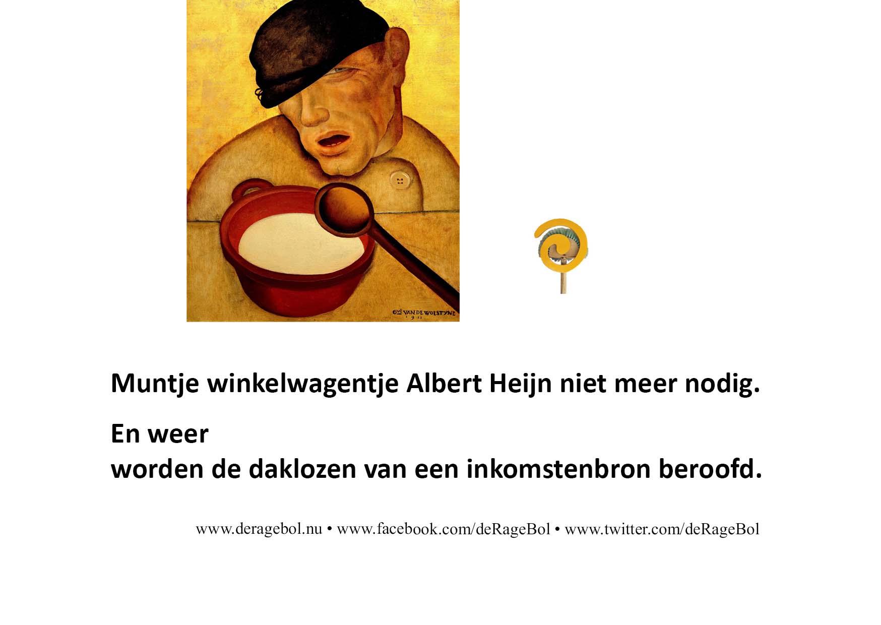Muntje winkelwagentje Albert Heijn niet meer nodig.En weerworden de daklozen van een inkomstenbron beroofd.