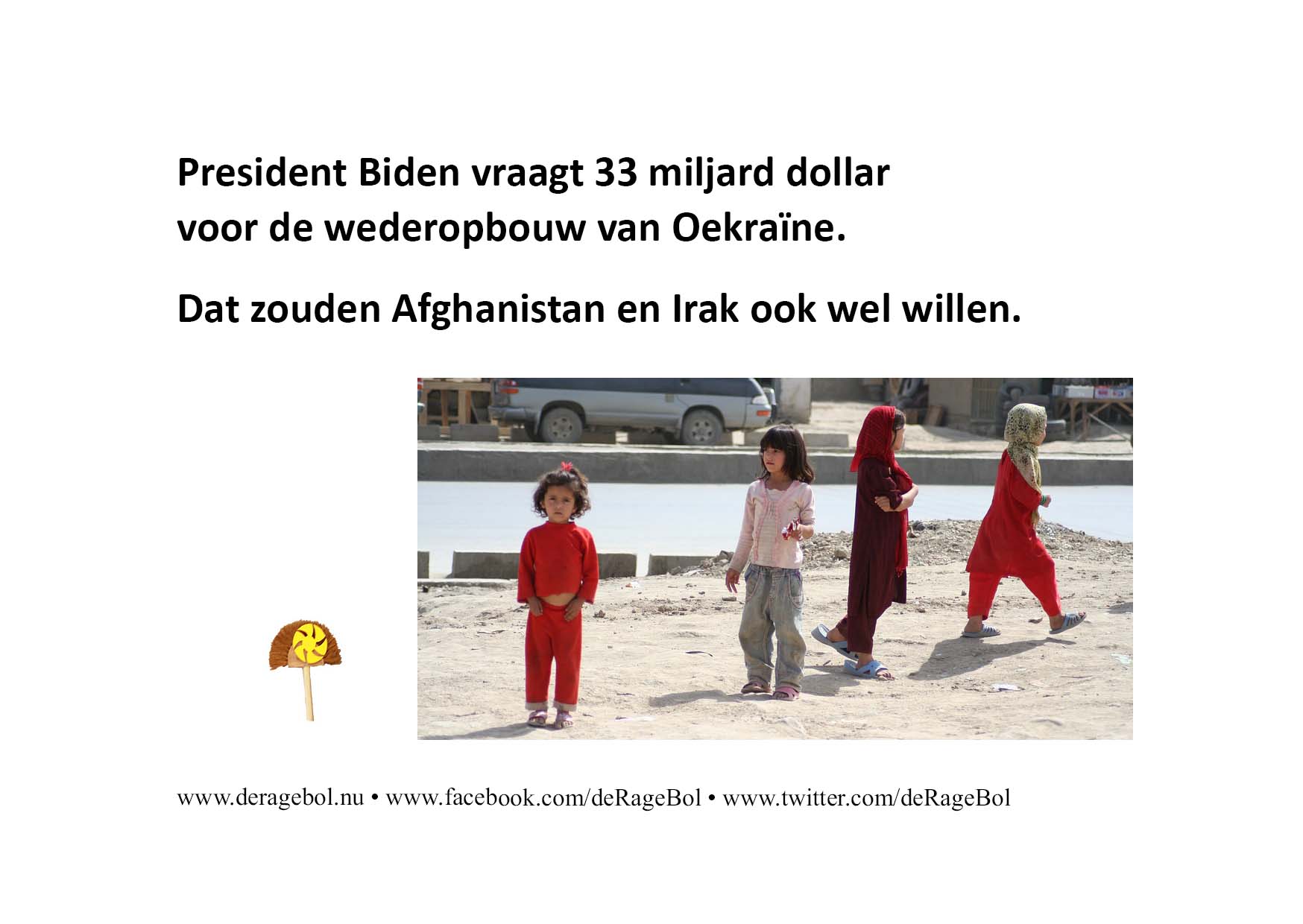 President Biden vraagt 33 miljard dollar voor de wederopbouw van Oekraïne.Dat zouden Afghanistan en Irak ook wel willen.