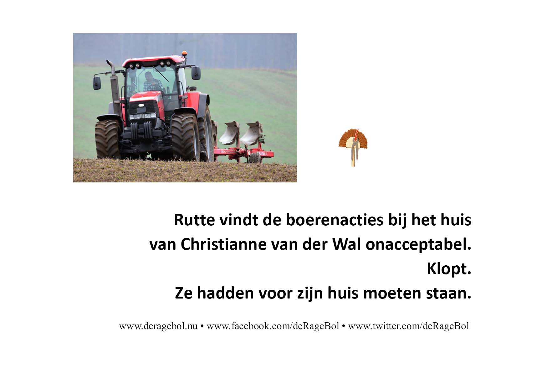 Rutte vindt de boerenacties bij het huis van Christianne van der Wal onacceptabel.Klopt.Ze hadden voor zijn huis moeten staan.