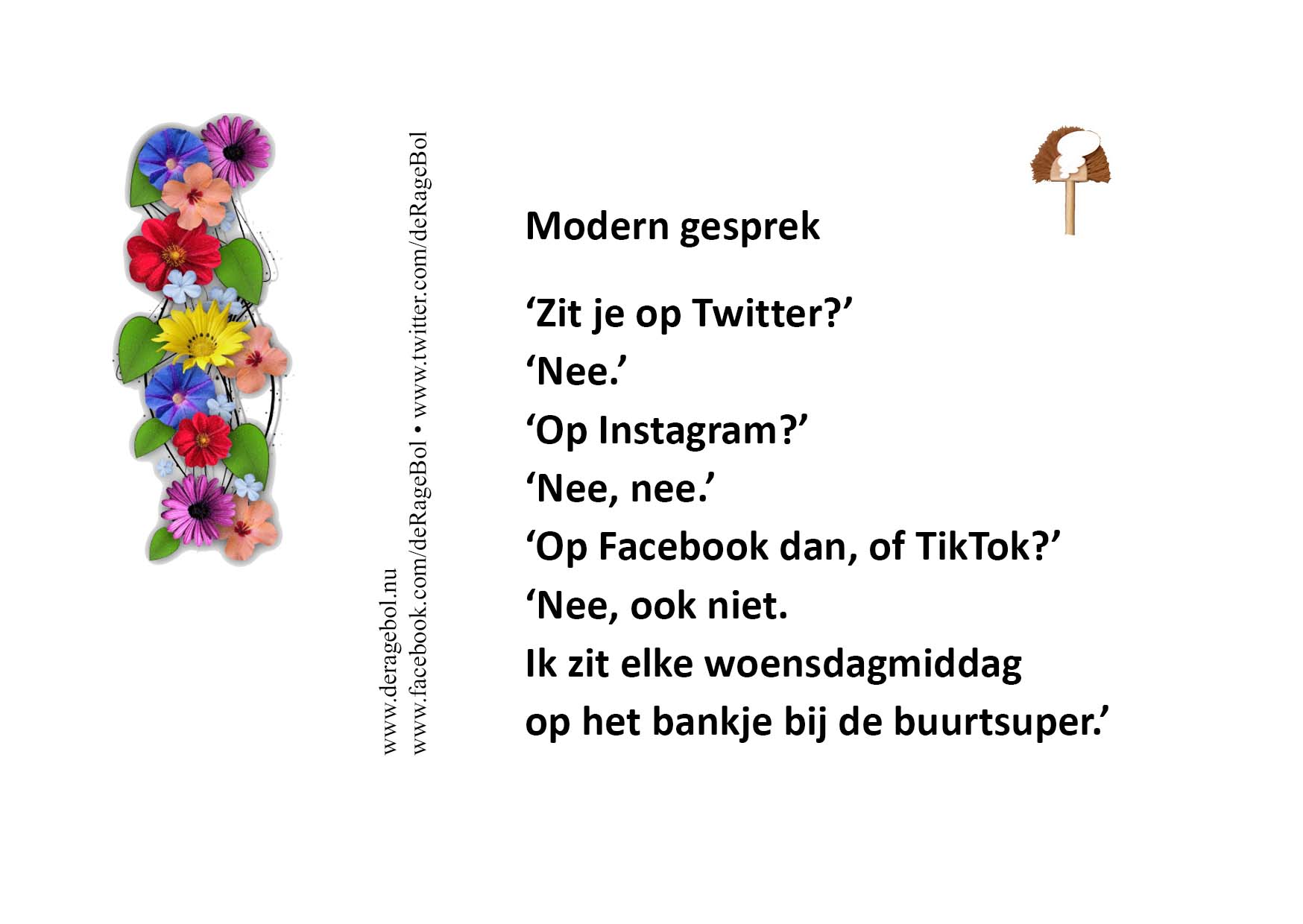 Ik zit elke woensdagmiddag op het bankje bij de buurtsuper.'