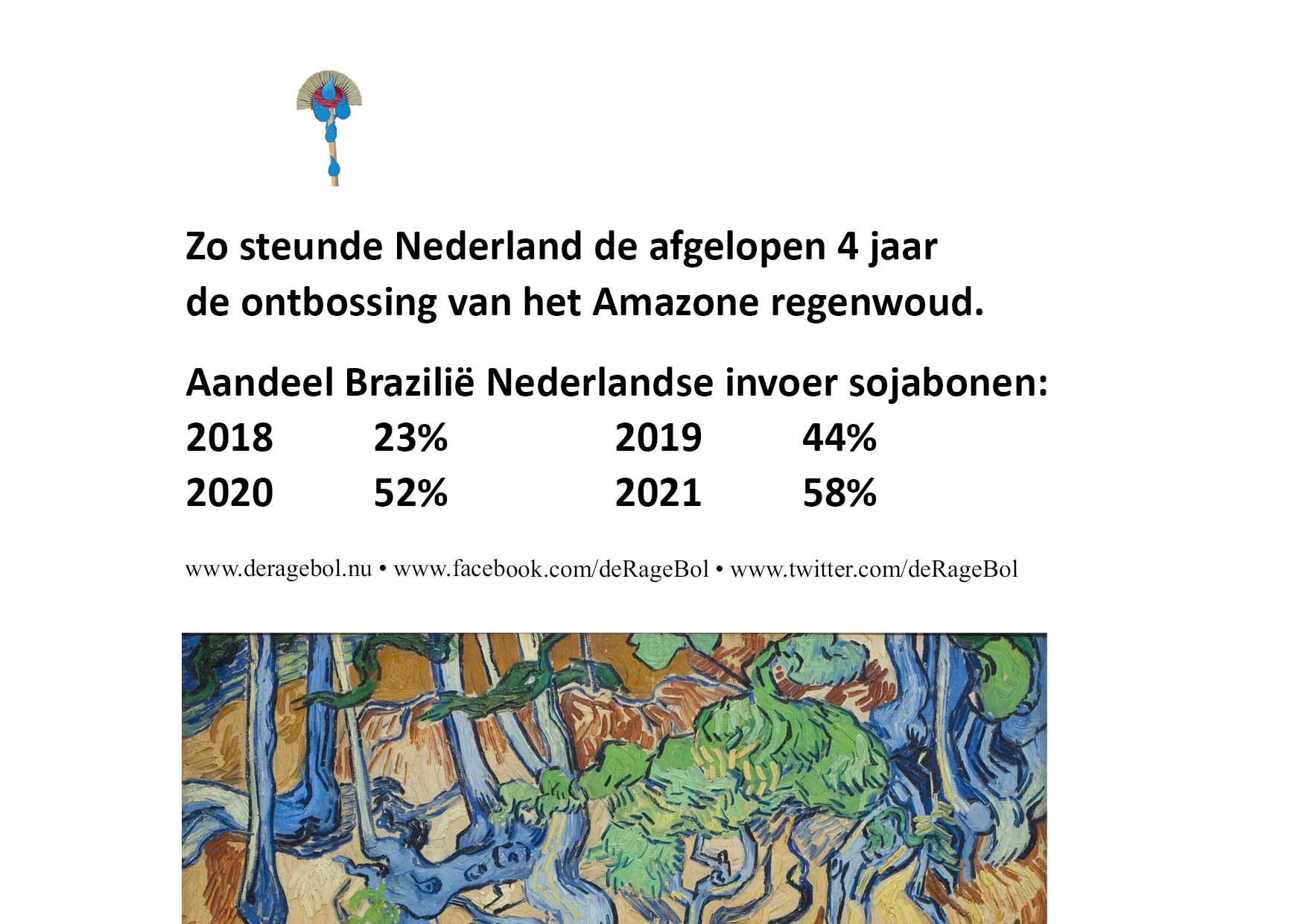 Zo steunde Nederland de afgelopen 4 jaar de ontbossing van het Amazone regenwoud.Aandeel Brazilië Nederlandse invoer sojabonen: