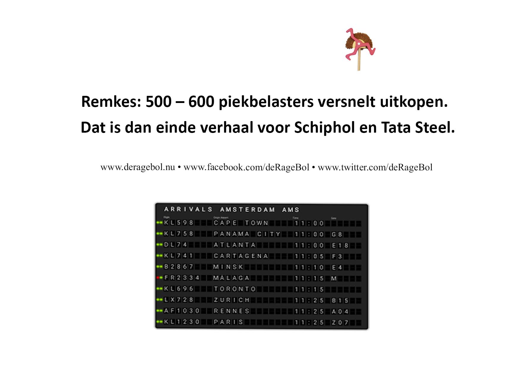 Remkes: 500 - 600 piekbelasters versnelt uitkopen.Dat is dan einde verhaal voor Schiphol en Tata Steel.